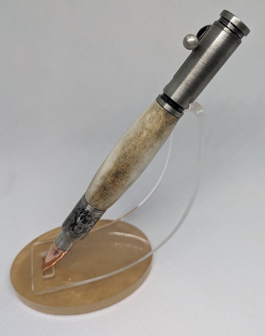 Antique Pewter Deer Hunter Bolt Action Pen with Deer Antler body