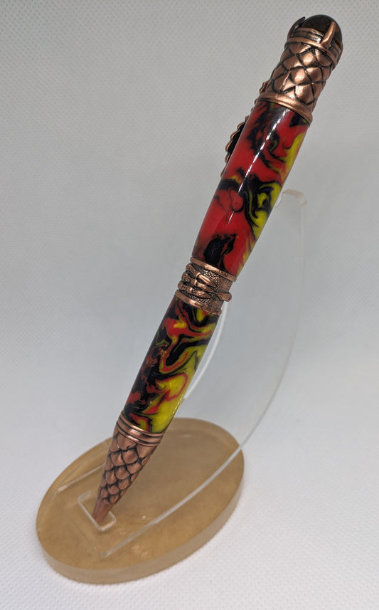 Antique Copper Dragon Pen in Red and Yellow with Black swirls